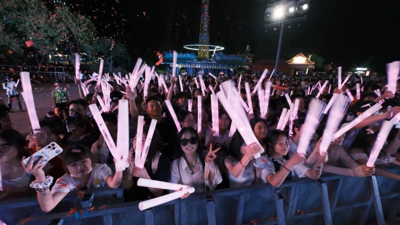 潑水間隙,熒光奇幻夜悄然登場。上萬支熒光棒隨節奏明暗交替,你還能在商店買到炫彩發箍、發光水槍,走進沉浸式光影舞池。當壓軸DJ登臺,在迷離水霧與鐳射光束中自在蹦跳,感受別樣氛圍。