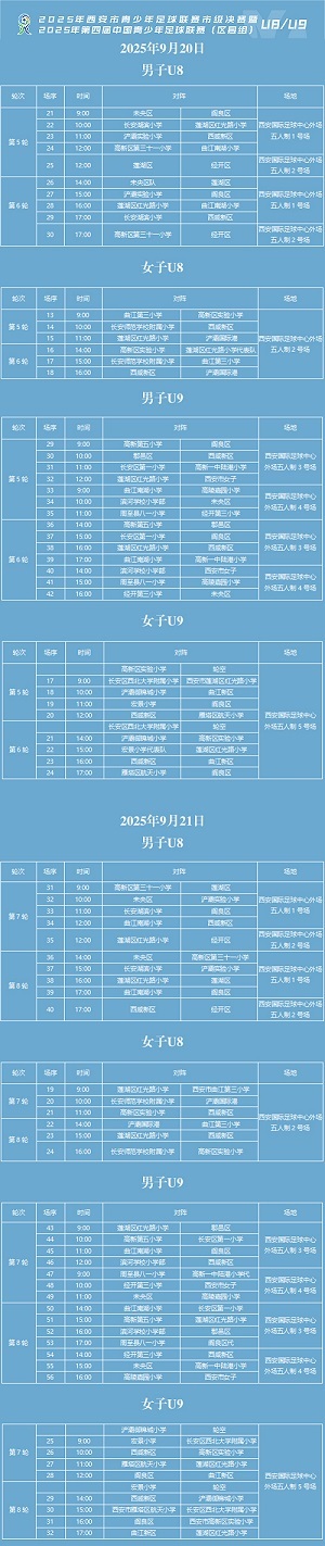 女子U8組:共6支代表隊(duì),分別為西咸新區(qū)、浐灞國際港、陜西省長安師范學(xué)校附屬小學(xué)、西安高新區(qū)實(shí)驗(yàn)小學(xué)、西安市曲江第三小學(xué)、西安市蓮湖區(qū)紅光路小學(xué)代表隊(duì)。
