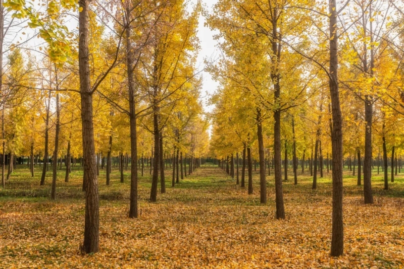 漢陽陵博物院的百畝銀杏林,10000余棵銀杏樹一到深秋就美成童話。金黃葉片層層疊疊鋪滿地面,宛如松軟的“金毯”;陽光穿透扇形葉隙投下斑駁光影,風吹葉動時簌簌作響,連腳步聲都變得輕柔。這里的金黃與千年帝陵相映,自帶穿越時空的氛圍感。