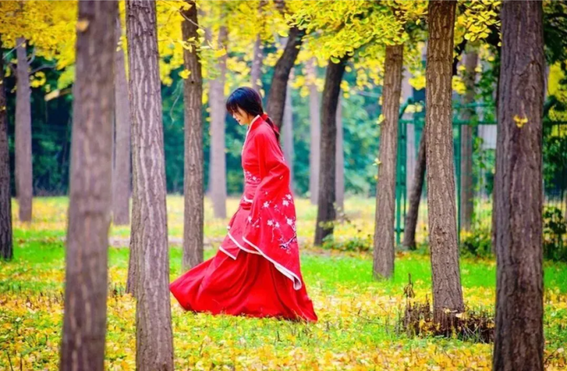 漢服愛好者沿銀杏大道巡游,租借漢服加入,一秒穿越回千年前時光。