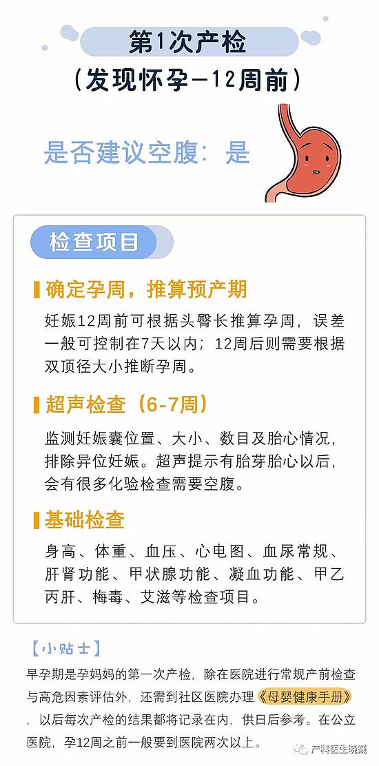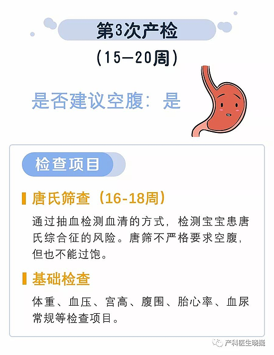 3.血尿常規(guī)自懷孕開(kāi)始一個(gè)月必須要查一次;肝功能、凝血功能、甲乙丙肝、糖耐量(OGTT)等檢查需要空腹,建議大家每次檢查完詢問(wèn)一下醫(yī)生,下一次產(chǎn)檢是否需要空腹。