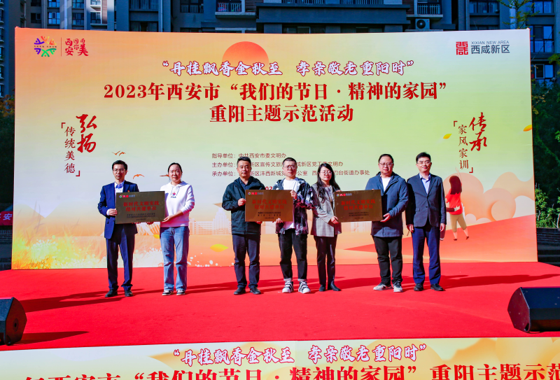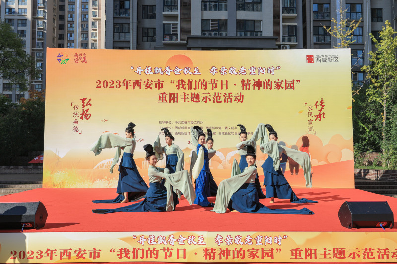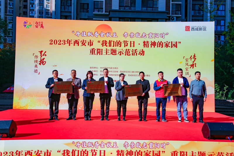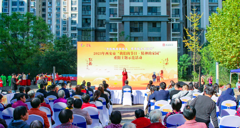 10月20日,在九九重陽節來臨之際,由中共西安市委文明辦指導,西咸新區宣傳文旅局、西咸新區黨工委文明辦主辦,西咸新區灃西新城黨政辦公室、釣臺街道辦事處承辦的2023年西安市“我們的節日·精神的家園”重陽主題示范活動,在灃西新城康定和園社區中心廣場舉辦。