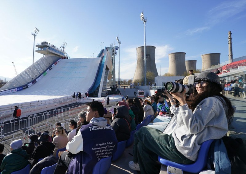 2024年11月30日,觀眾在首鋼大跳臺觀看2024-2025賽季國際雪聯(lián)單板及自由式滑雪大跳臺世界杯北京站比賽。連日來,多項世界級賽事在“雪飛天”“冰絲帶”等北京冬奧會場館上演,精彩連連。北京冬奧會后,越來越多的冰雪賽事讓冰雪流量轉(zhuǎn)化為持續(xù)增長的市場價值,一系列高水平賽事在吸引了大量游客前來觀賽的同時,拉動了賽事周邊消費,讓冰雪經(jīng)濟“熱起來”。新華社記者 張晨霖 攝