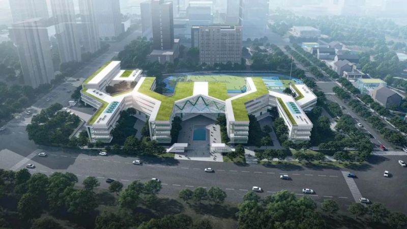 學校建筑形態采用樹枝相連的形狀,色彩選用綠色,寓意學生蓬勃生長的態勢和學校“十年樹木,百年樹人”的精神追求。教學區域置于整個項目的西側,頂層的走廊盡端均可觀賞到灃河景色。建成投用后,將優化轄區優質學位建設布局,滿足更好地群眾“上好學”的需求。