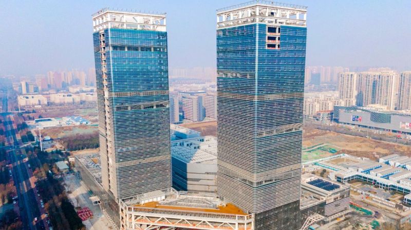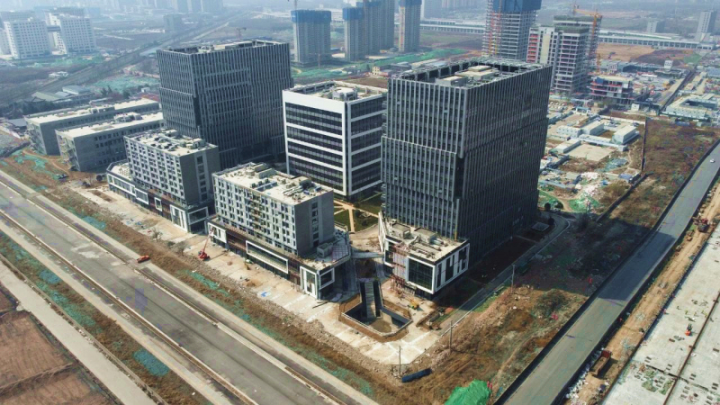截至目前,項目一二號樓已完成主體施工,正在進行機電安裝及幕墻收尾工作,三四五號樓已完成機電安裝及外立面的幕墻安裝,室外管線施工已完成,正在進行景觀綠化施工,即將開始室內(nèi)精裝修施工,預(yù)計2025年建成投入使用。