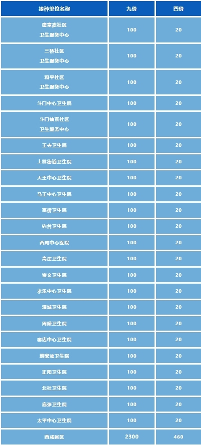 本次西咸新區(qū)開放23個接種門診號源,接種日期:1月10日至2月8日共30天,23個接種門診支持四價HPV疫苗預(yù)約460人,九價HPV疫苗預(yù)約2300人。預(yù)約成功,系統(tǒng)提示。