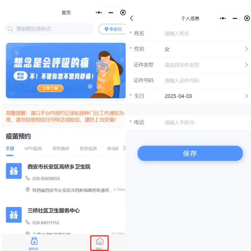 (2)進入小程序后,點擊“我的”,進行個人信息完善。