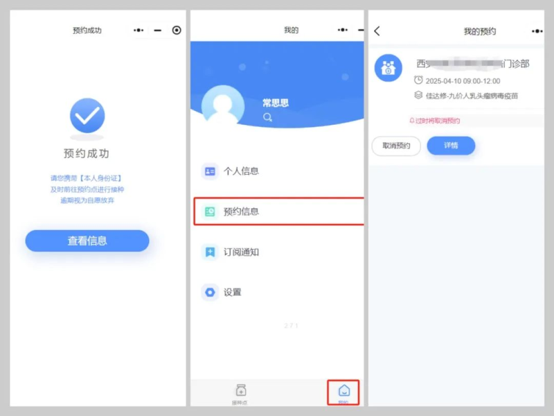 (4)頁面顯示預約成功后,可在“我的”頁面點擊“預約信息”查看詳細信息。