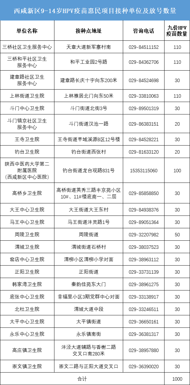 本次西咸新區開放23個惠民項目接種單位,第一批九價疫苗支持預約1000人,數量有限,約完為止。