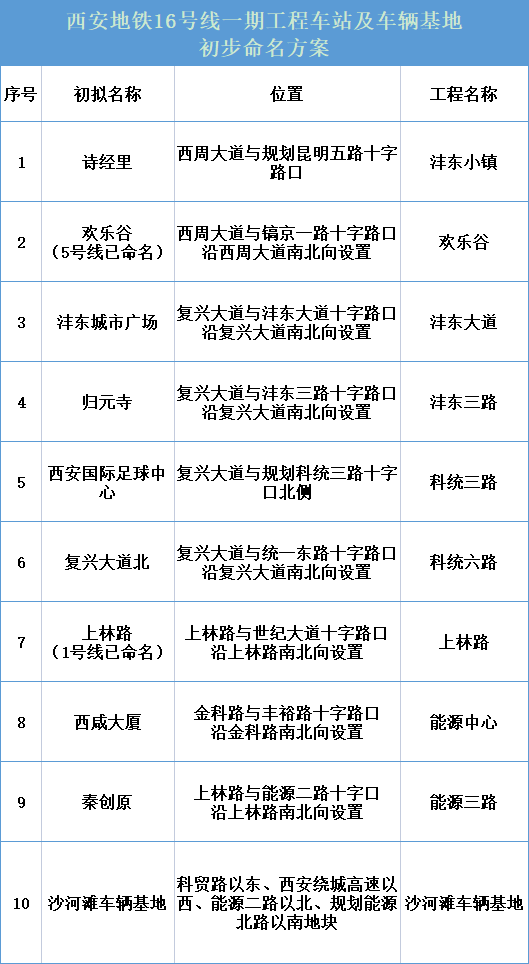 西安地鐵16號線一期工程已全面開工建設(shè),經(jīng)西咸新區(qū)軌道公司組織專家現(xiàn)場踏勘,征求新區(qū)各部門意見研究形成了初步命名方案。為進(jìn)一步提升地鐵服務(wù)功能,提高車站命名公眾參與度,體現(xiàn)民聲民意,現(xiàn)將地鐵16號線一期工程車站和車輛基地初步命名方案公布如下,歡迎大家提出寶貴意見。