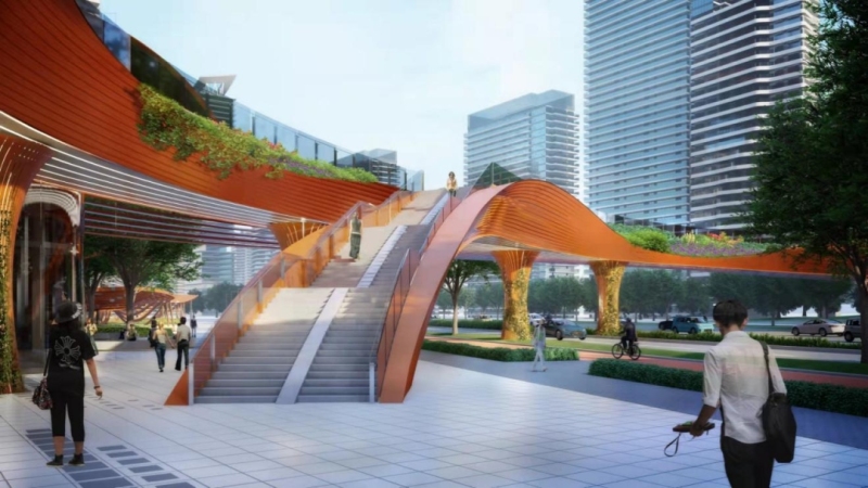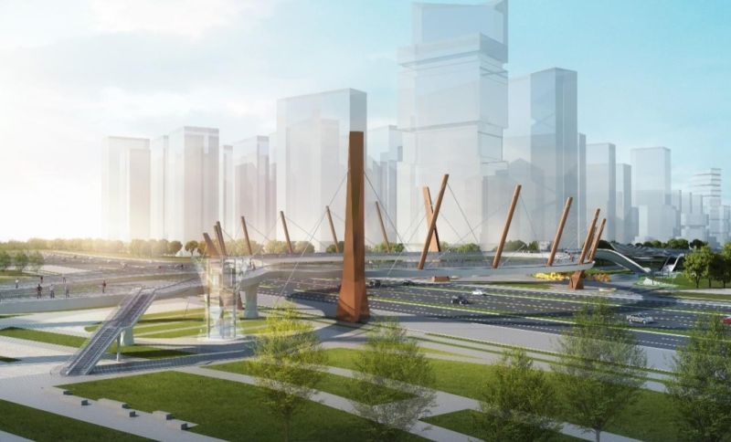本次天橋方案設計突出文化元素,彰顯科技感、現代感和結構美,兼具強烈的視覺表現,與周邊環境和諧共處,力求打造能源金貿區獨特的城市景觀。
