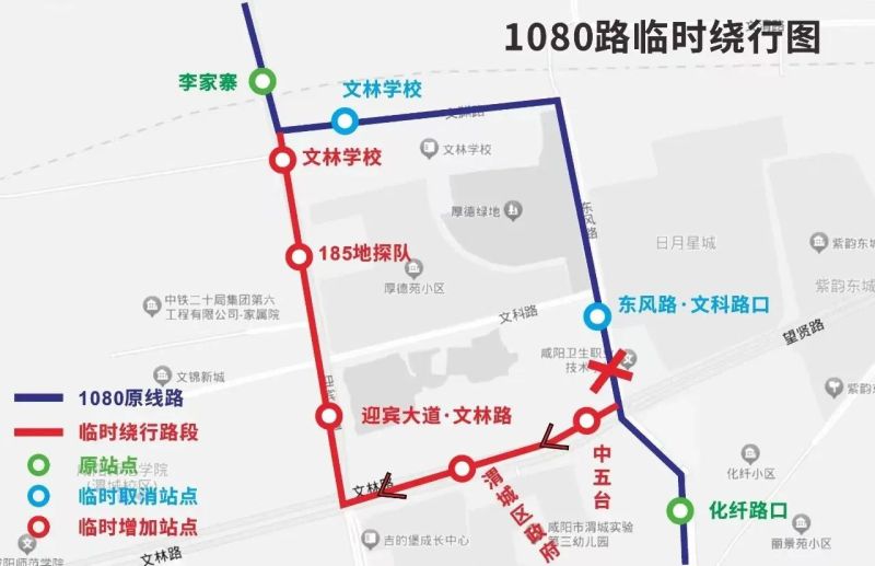 受道路施工影響,自5月8日起,西咸公交集團(tuán)對(duì)1080路、1145路進(jìn)行臨時(shí)繞行運(yùn)營。