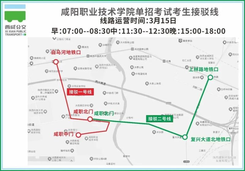 接駁二號線停靠站點(diǎn):上林路地鐵站-復(fù)興大道北地鐵站-咸職北門