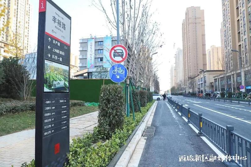 對西安繞城高速西咸立交出入口沿線及周邊上林路、豐昌路、能源路、科貿路等8條道路,除了更換新路牌、優化交通標識標牌、斷面恢復、行車道和人行道鋪裝層更新改造、維修等,還在豐裕路、科貿一路等路段加裝了非機動車隔離護欄,在園區重點道路十字路口增設了交通信號燈,同步對井、路緣石、無障礙設施檢查后進行維護修補和改造提升,不斷改善道路通行條件。