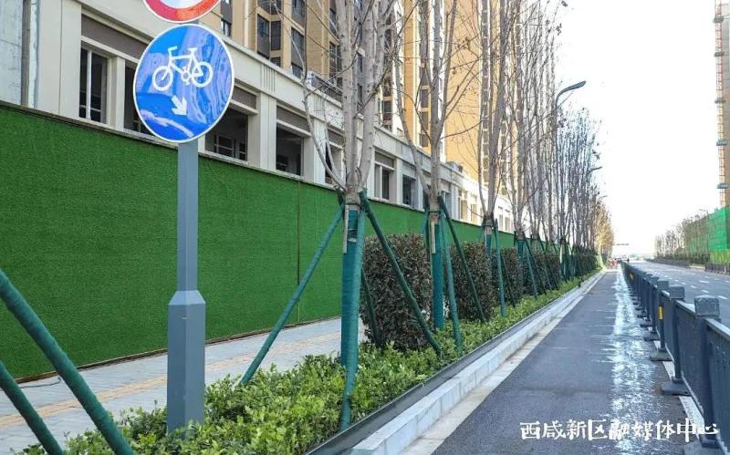 更新維護城市家具、美化施工圍擋及建筑墻體、加強道路園林綠化……此次改造提升,集中對西安繞城高速西咸立交出入口沿線及周邊重點道路兩側保潔員工具箱、便民座椅、配電箱、通信電纜箱等進行了常態化擦洗,對破損城市家具進行了更新維護,也對道路兩側建筑施工圍擋及護欄墻體進行了標準化提升,統一更換為壓頂式草皮圍墻并設置園區公益宣傳標語口號,使整體道路景觀保持一致,統一區域內道路環境形象。