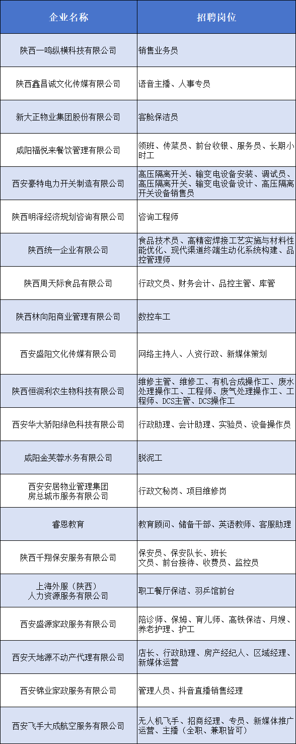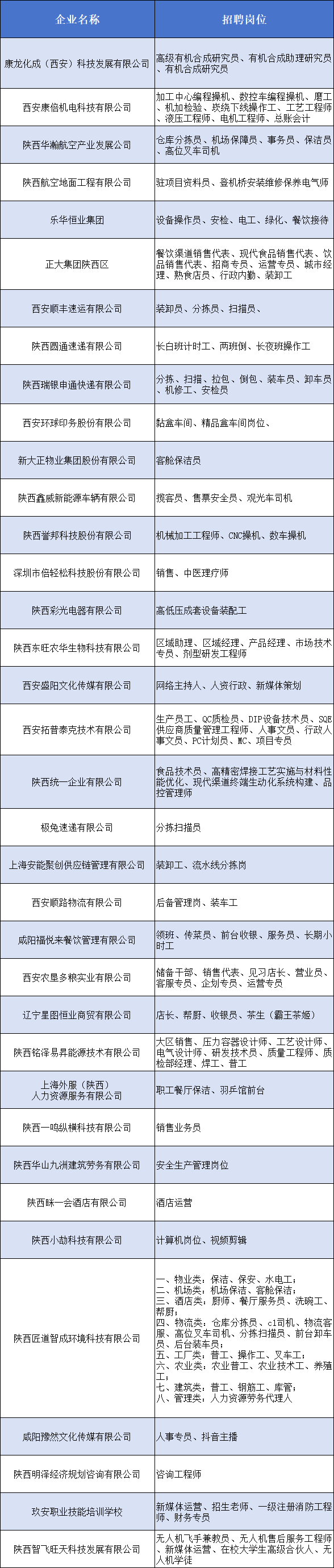 西咸新區金秋招聘季空港新城專場招聘會崗位及企業名單