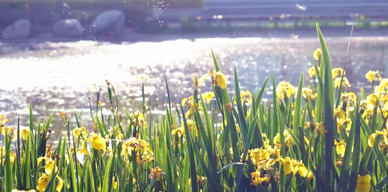 ?打卡亮點:黃菖蒲與碧水晴空,構成莫奈油畫質感。