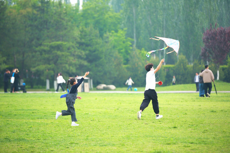 來昆明池?七夕公園放風箏,體驗感直接拉滿。云漢廣場旁的大草坪寬敞得很,能讓你盡情奔跑,感受春風助力。各種各樣的風箏在天上飛,和藍天白云相映成趣,隨手一拍就是春日大片。