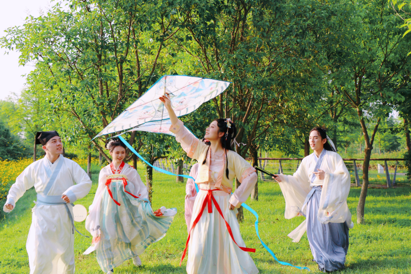 重點來了,景區附近的大草坪是放風箏的秘密基地。迎著風跑,風箏扶搖直上融入藍天白云之間,仿佛開啟一場穿越千年的奇幻之旅。