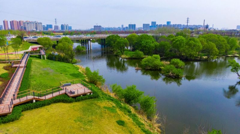 灃河西畔的灃河景觀示范帶,河流、濕地、森林等自然景觀相互融合,濱水微地形景觀、慢跑步道、親水廊道藝術搭配,構建出人與自然和諧互動的親近場所。