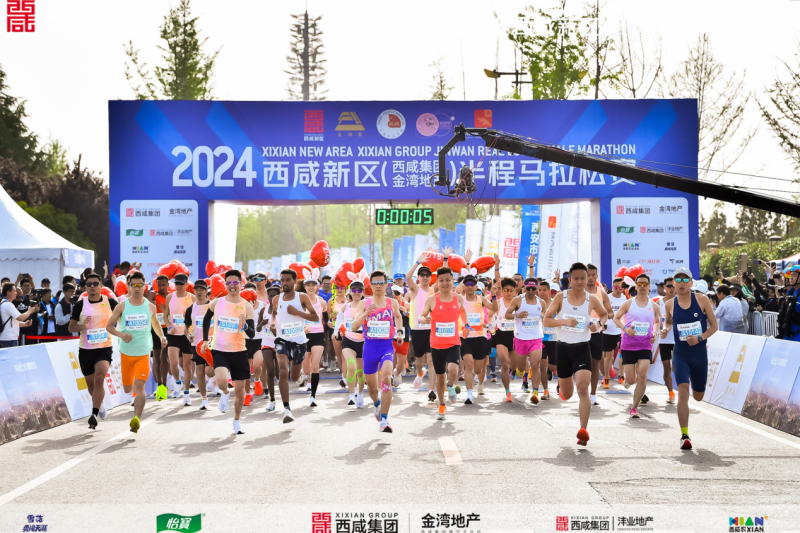 4月21日上午,在和煦溫暖的春風中萬名跑步愛好者齊聚昆明池畔,2024西咸新區(西咸集團金灣地產)半程馬拉松賽拉開帷幕。