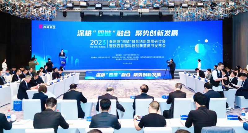 6月3日上午,以“深耕‘四鏈’融合 聚勢創(chuàng)新發(fā)展”為主題的秦創(chuàng)原“四鏈”融合創(chuàng)新發(fā)展研討會暨陜西首部科技創(chuàng)新藍(lán)皮書發(fā)布會在西咸新區(qū)舉辦。百余名國內(nèi)知名專家學(xué)者、企業(yè)家,高校院所、創(chuàng)投企業(yè)代表共聚一堂,圍繞促進(jìn)秦創(chuàng)原“四鏈”融合碰撞思維火花,匯集各方智慧,為推動區(qū)域高質(zhì)量發(fā)展建言獻(xiàn)策。