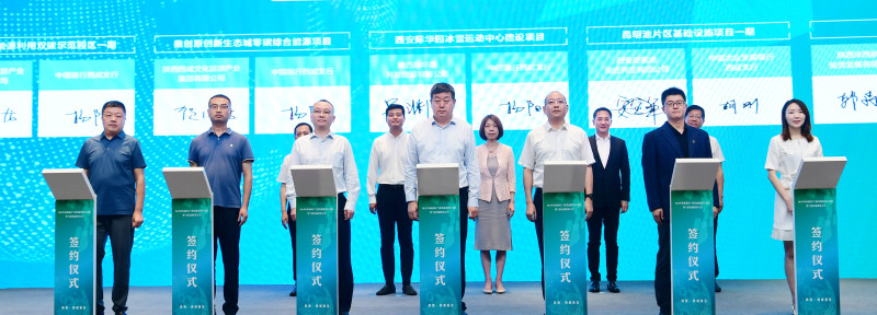 西咸新區黨工委書記楊仁華出席并見證簽約,陜西省生態環境廳副廳長郝彥偉,西咸新區黨工委委員、管委會副主任艾晨,國家金融監督管理總局政策研究局二級巡視員李曉文,生態環境部應對氣候變化司綜合處處長丁輝,自然資源保護協會中國區副主任游夢娜分別致辭。西咸新區黨工委委員劉宇斌主持。